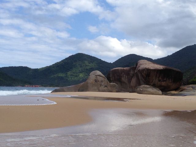 While all tourists take the bus to the end of the line in Trindade (45 minutes and $2 from the Paraty bus station) and then begin the walk to the isolated beaches in the nature preserve to the south of the town, we jumped off at the first sight of water at Cepilho, a beer-and-shrimp shack on a beach hemmed in by massive rocks. It was a Friday in April and we had the place to ourselves. Space to wander around or sit under a palm tree, just like in the picture books.